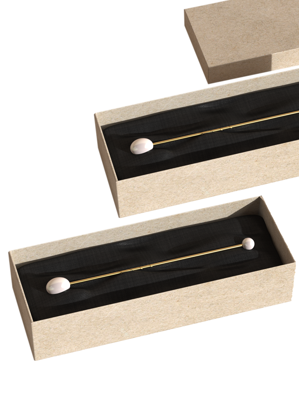 Hand-crafted in the UAE from recycled gold and locally cultured pearls. The pin’s minimalist construction ensures long life and timeless use. It is presented in an organic palm paper box with biodegradable fiber insert.