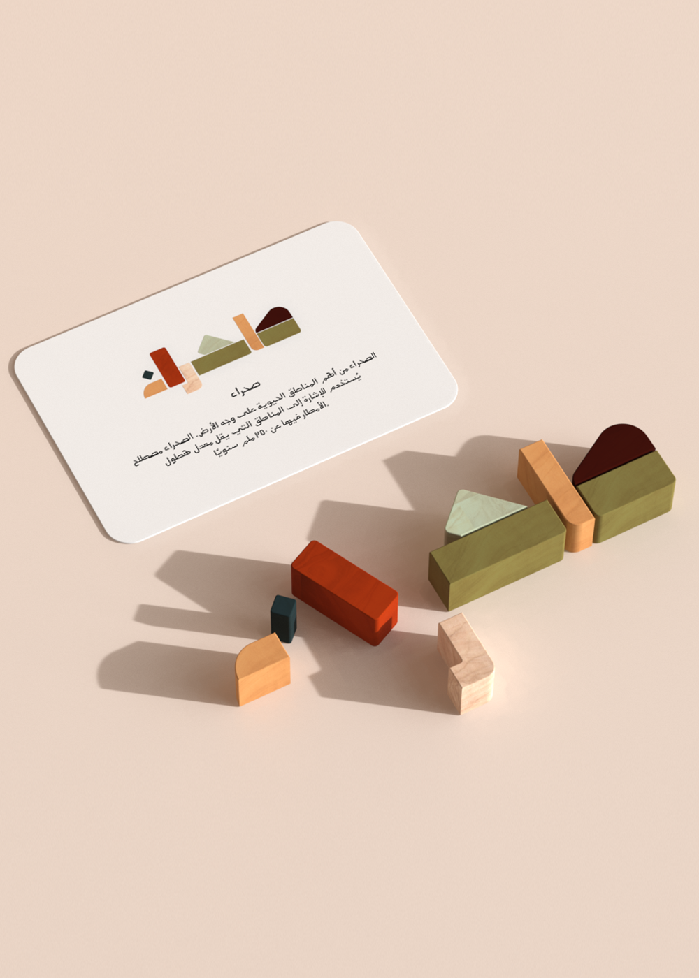 By building words through shape and touch, children learn Arabic in a visual and playful way while discovering the meaning behind the symbols that define their nation. The set encourages creativity, logic, and cultural awareness — a learning experience that grows with the child.