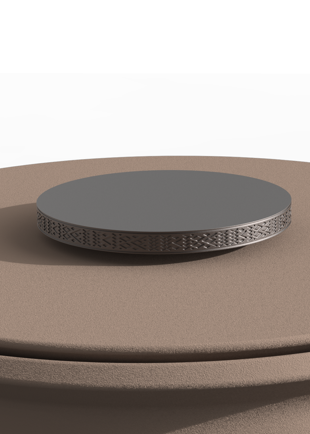 The Date Jar is a modern reinterpretation of the traditional date vessel. Crafted in natural clay, the jar has a calm, earthy presence, paired with an aluminum lid engraved with a refined Al Sadu pattern. The balance of raw ceramic and metal reflects heritage through a contemporary form. Designed for everyday use, gifting, or table display.