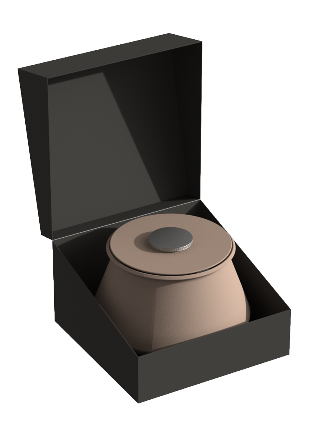 Natural clay tones with brushed aluminum lid